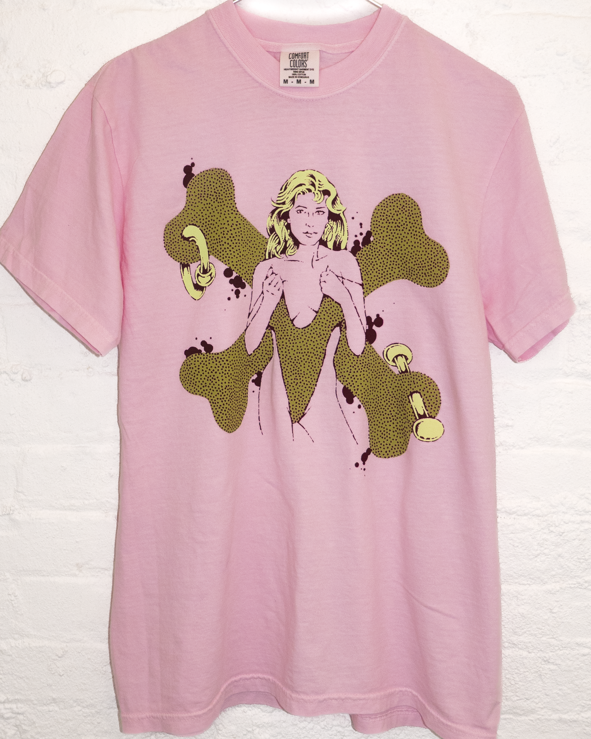 Screen printed on 100% cotton Comfort Colors pink shirtKaylr’s designs range from bizarre, abstract notions to classic figures and motifs - often rooted in tattoo culture, but always stylistically unique. With a wacky colorway and a bold, freaky composition, this will be your mom’s new favorite shirt.